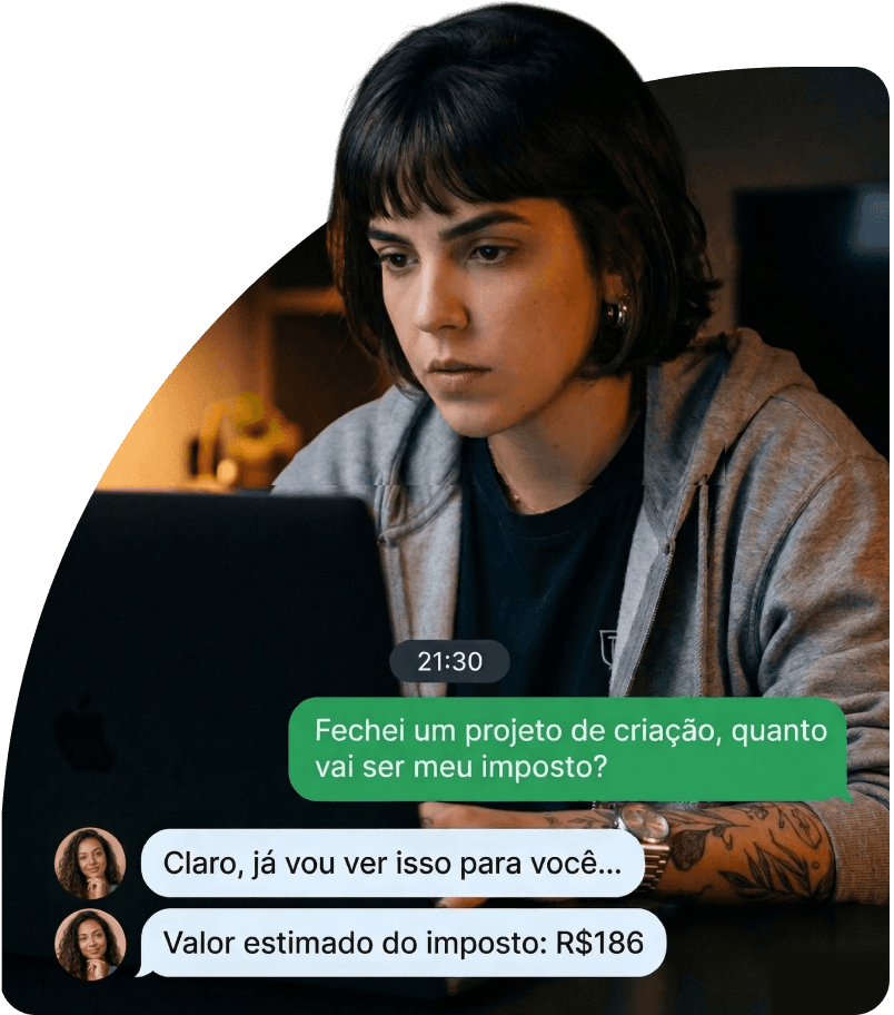 “Sou artista e a plataforma simplifica tudo para mim. Consigo emitir notas para meus clientes e ter meus impostos sempre em dia.”